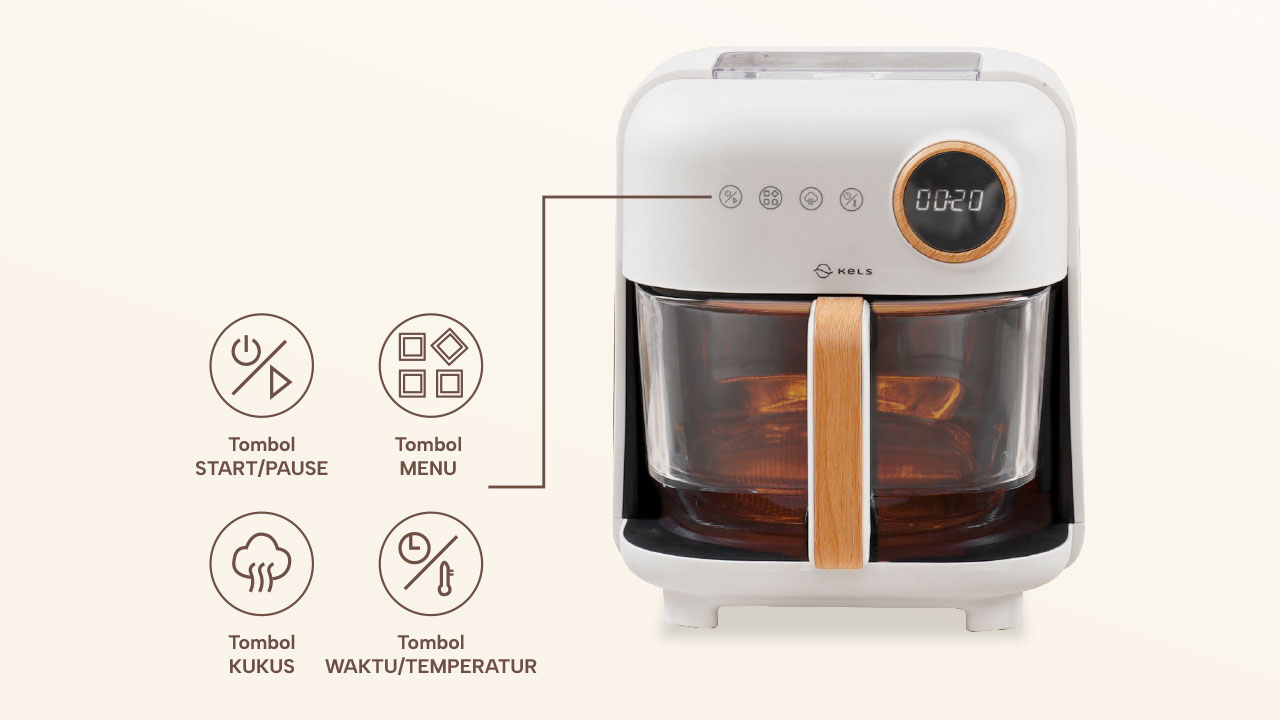Desain kaca transparan di bagian depan membuat kamu bisa pantau proses masak tanpa perlu membuka tutup air fryer. Jadi kamu nggak perlu lagi menebak-nebak apakah masakanmu sudah matang atau belum, cukup melihat dari kaca.