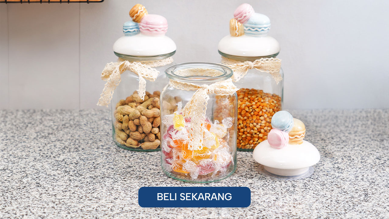 Open house Natal rasanya nggak lengkap tanpa meja penuh camilan dan kue favorit, dari nastar, kastengel, sampai putri salju. Supaya semuanya tersaji rapi, Stoples Kaca Macaroon Set (3 pcs) bisa jadi andalan. Material food grade dengan desain transparan memudahkan kamu melihat isinya, sementara tutup kedap udara membantu menjaga kue tetap fresh. Ditambah hiasan macaroon di bagian tutup yang manis, stoples ini bukan cuma fungsional, tapi juga berguna untuk mempercantik ruang tamu dan bikin suguhan Natal terasa makin istimewa.