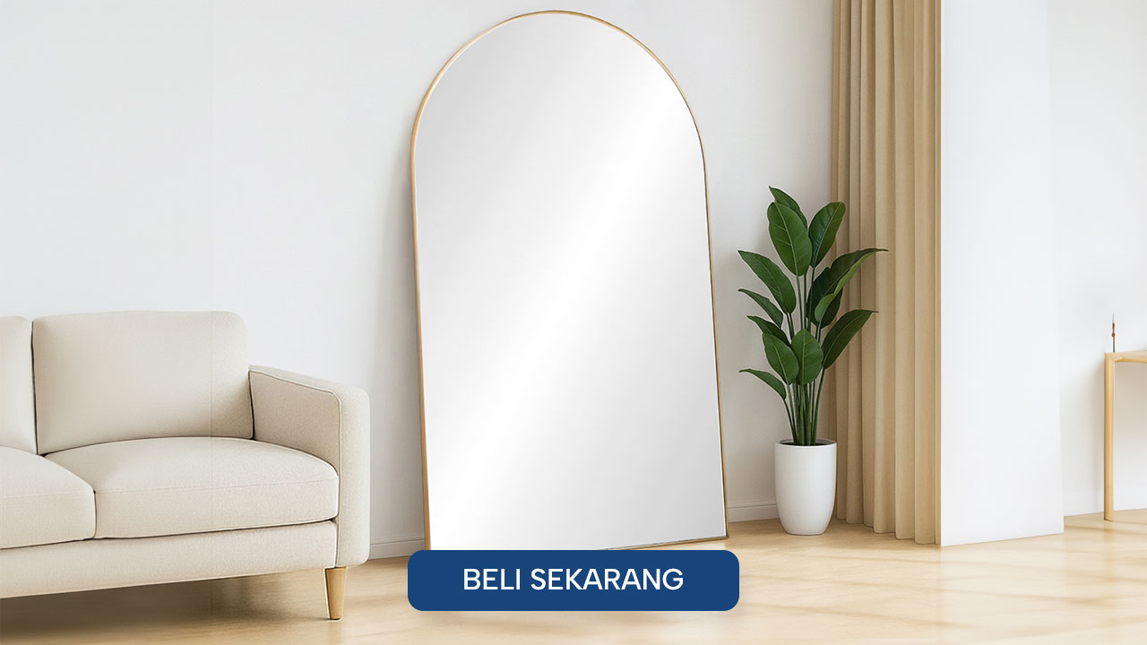 Aksesoris selanjutnya ada cermin lantai berdesain modern dan elegan yang bikin rumah makin siap open house saat Natal. Pantulannya jernih, bentuk lengkungnya estetik, bikin ruangan terasa lebih terang dan hidup. Tinggal tambahin hiasan rumbai, ornamen Natal, atau lampu kecil di sekelilingnya untuk sentuhan festive yang lebih hidup. Nggak cuma mempercantik ruangan, cermin ini juga jadi spot foto favorit tamu yang bikin rumah terlihat lebih cantik, momen Natal pun terasa makin berkesan.