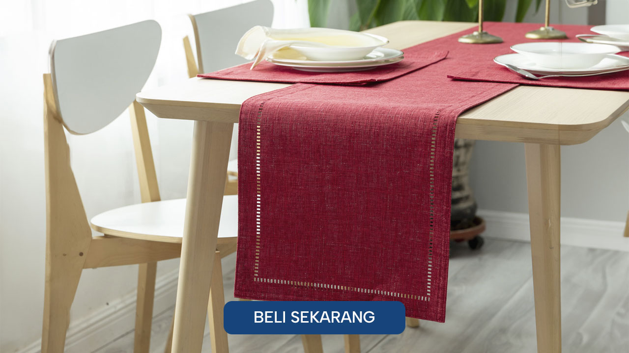 Nggak cuma itu, table runner ini bukan cuma stylish buat momen Natal atau pas open house aja, tapi juga cocok banget dipakai sehari-hari biar meja makan selalu terlihat rapi dan estetik. Dengan isi lengkap 1 table runner dan 4 tatakan piring, kamu tinggal pasang, dan meja makan langsung siap jadi pusat perhatian tamu maupun keluarga setiap hari.