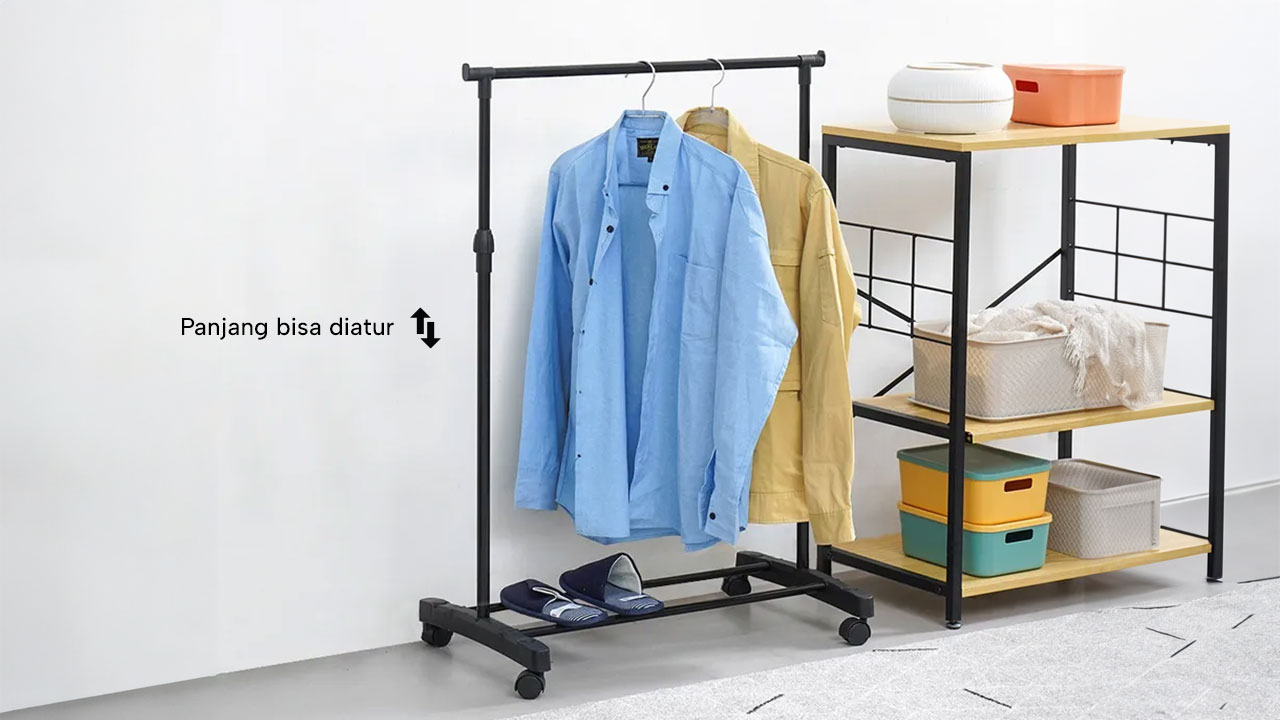 Gantungan Baju Jash bisa jadi partner sat set buat nyimpen jaket, hoodie, atau kemeja kesayanganmu. Bahannya kokoh tapi tetap ringan, ada roda biar gampang dipindah, dan mudah dirakit sendiri. Desainnya simple dan minimalis, cocok buat anak kos dan rumah minimalis.