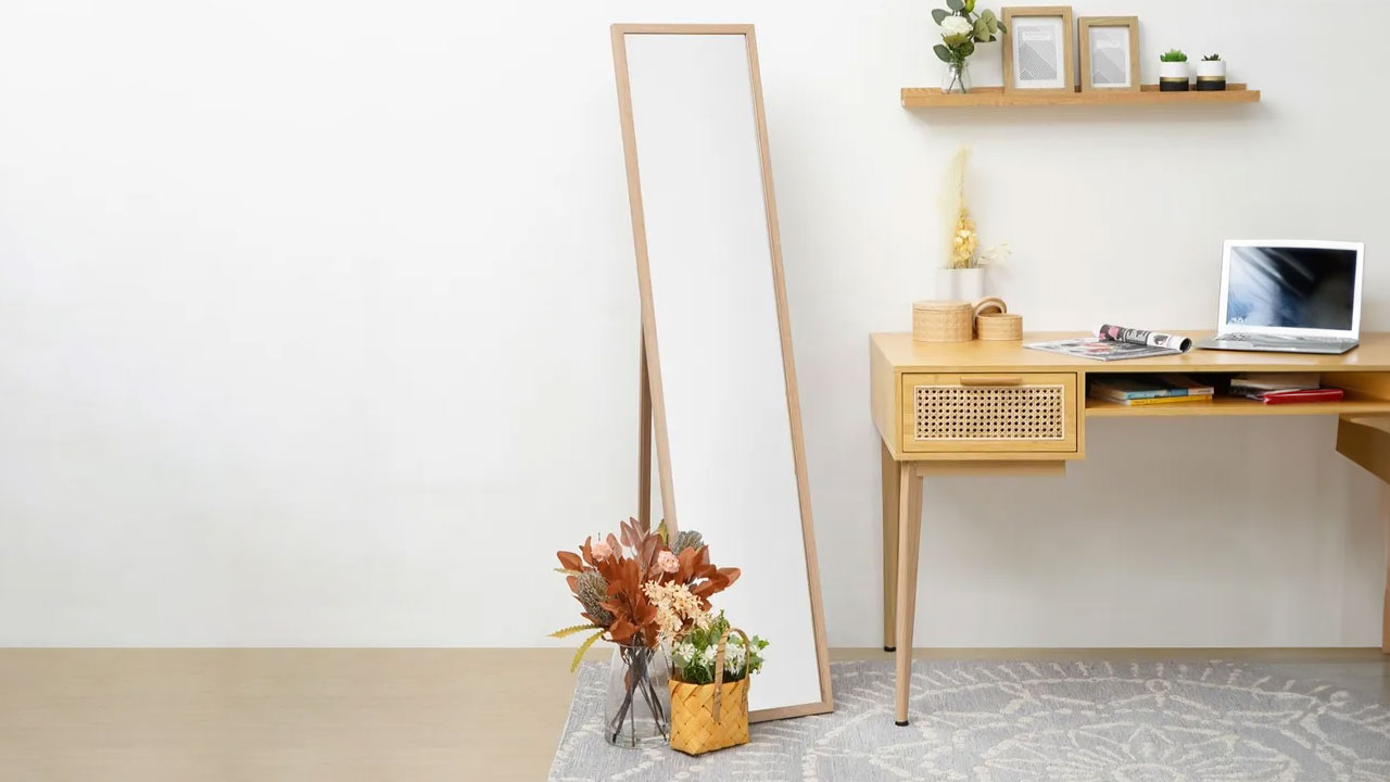 Cek outfit sebelum berangkat jadi lebih asyik kalau ada Cermin Lantai, bisa full ngaca sebadan! Desainnya simple bikin kamar keliatan lebih estetik, dan ada kaki penopang yang stabil. Cocok buat Sobat INFORMA yang doyan foto OOTD.