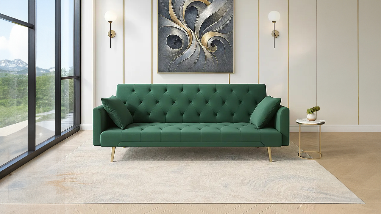 Sobat INFORMA butuh sofa yang fleksibel buat duduk santai sampai jadi tempat rebahan, Relax Sofa Raya bisa jadi andalan. Tampilannya modern dengan balutan velvet hijau yang bold tapi tetap hangat. Dudukannya empuk dan sandarannya bisa direbahkan saat butuh ekstra tempat istirahat. Sudah termasuk bantal kecil yang bikin tampilannya makin manis.