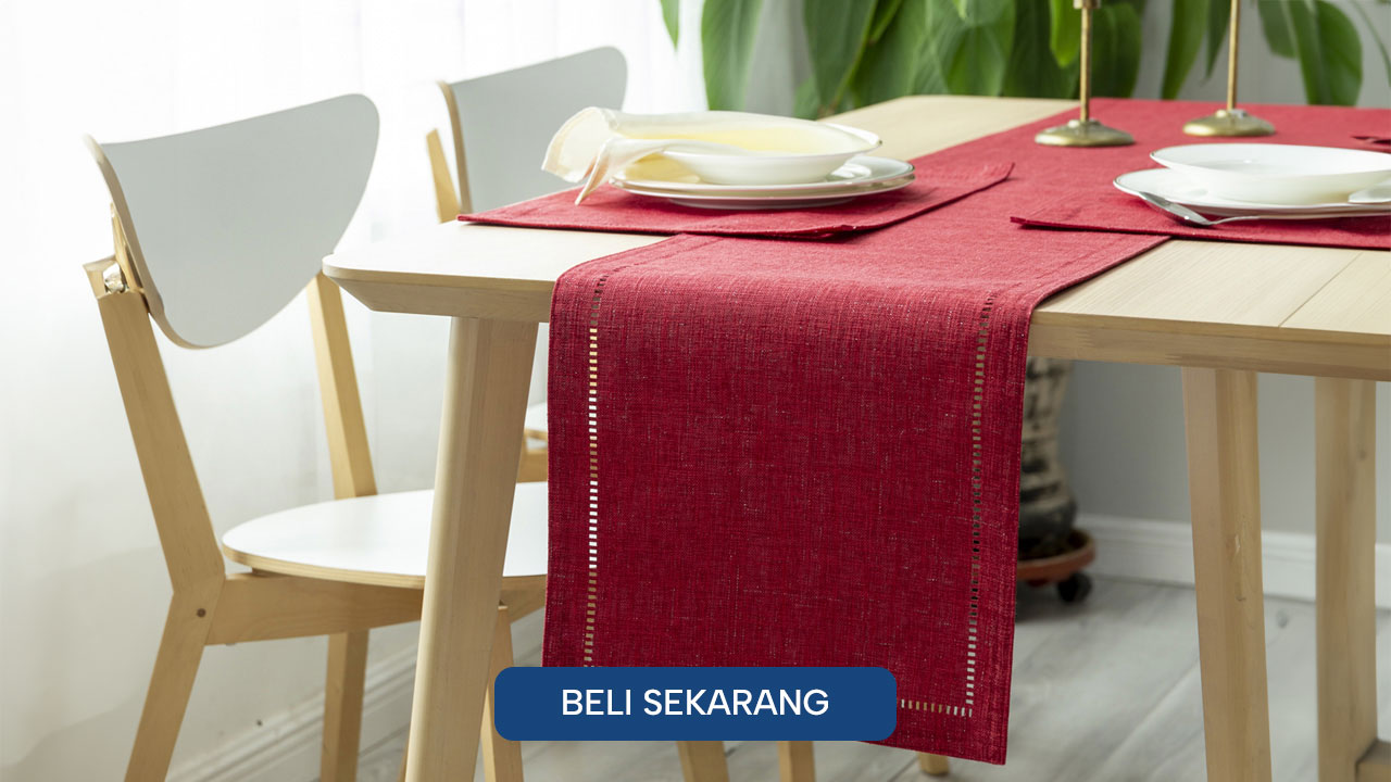 Biar suasana makan malam Natal makin hidup, mulai aja dari detail kecil seperti taplak meja. Warna merah, hijau, atau emas bisa langsung bikin ruang makan terasa lebih hangat. Sobat INFORMA bisa pakai Table Runner Set Eyelet Maroon, terbuat dari material berkualitas yang mudah dibersihkan dan mampu menjaga permukaan meja tetap rapi.