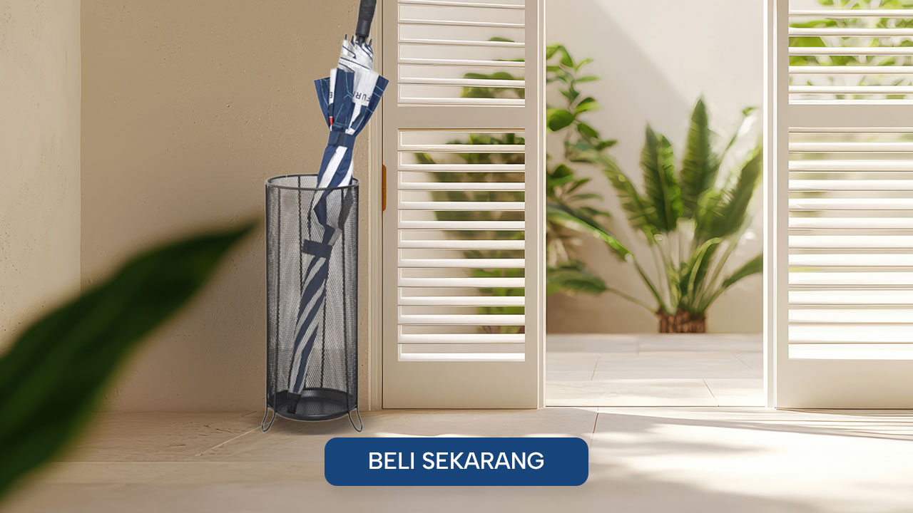 Hujan datang? Tenang, lantai rumah tetap aman! Sobat INFORMA cuma perlu punya tempat payung. Dilengkapi kaki yang kuat dan stabil, tempat payung ini bisa menampung berbagai jenis payung, mulai dari ukuran standar sampai payung golf. Desainnya juga berlubang jadi udara tetap mengalir dan payung bisa cepat kering tanpa bau lembap. Nggak cuma fungsional, tampilannya juga elegan dan cocok banget diletakkan di area pintu masuk. Dengan tempat payung ini, rumah Sobat INFORMA tetap kelihatan rapi dan kering tanpa perlu khawatir lantai licin.